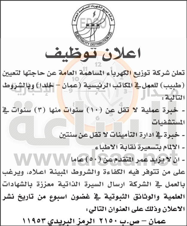 شركة توزيع الكهرباء بحاجة لطبيب